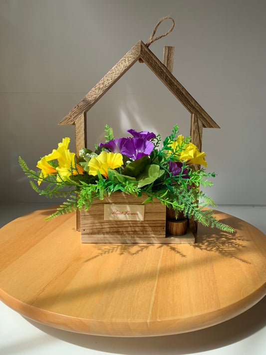 Gerbera and Rose Wicker Basket Flower Arrangement