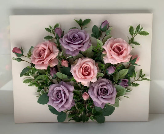 Pink and Lilac Roses 3D Wall Art Floral Canvas